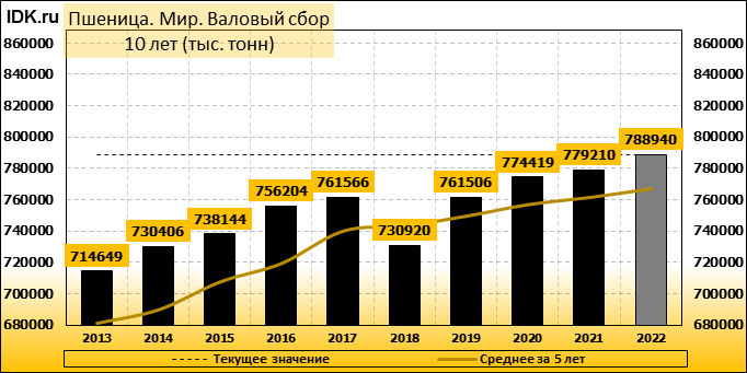 Валовый сбор: оценка пересмотрена в сторону повышения до 788940 тысяч тонн. Показатель вырос на 0.66 процента.
