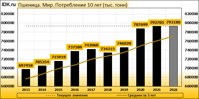 Потребление: показатель пересмотрен в сторону повышения до 793188 тысяч тонн. Значение выросло на 0.26 процента.