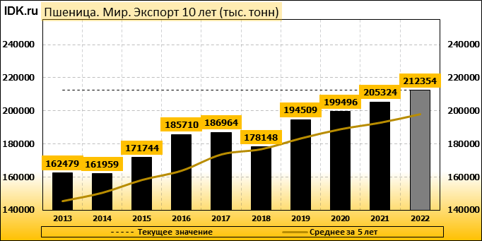 Экспорт: оценивается в 212354 тысячи тонн. За месяц показатель вырос на 0.44 процента.