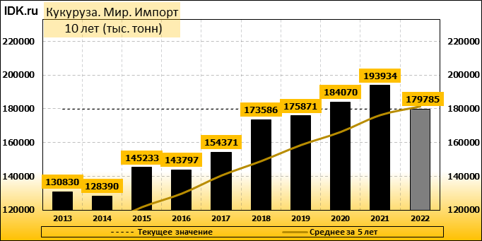 Импорт: составит 179785 тысяч тонн. Значение по прошествии месяца упало на -1.41 процента.