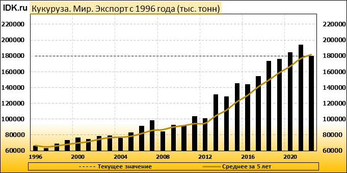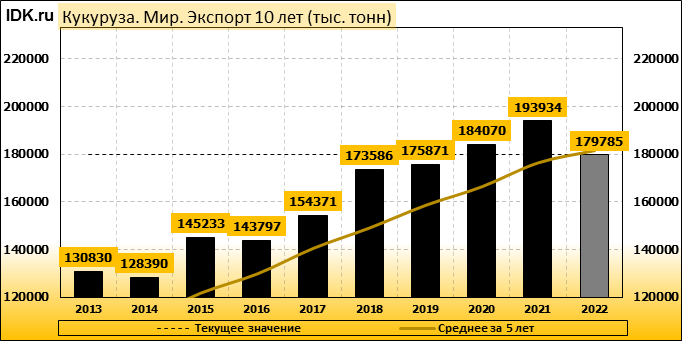 Экспорт: оценивается в 179785 тысяч тонн. За месяц показатель упал на -1.41 процента.