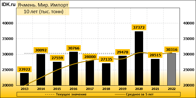 Импорт: составит 30316 тысяч тонн. Значение по прошествии месяца поднялось на 1.34 процента.