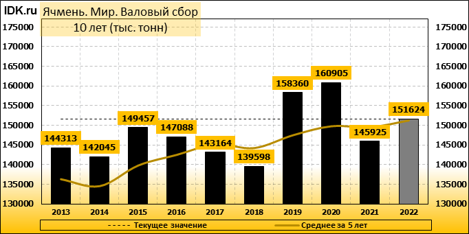 Валовый сбор: оценка пересмотрена в сторону повышения до 151624 тысяч тонн. Показатель вырос на 0.76 процента.