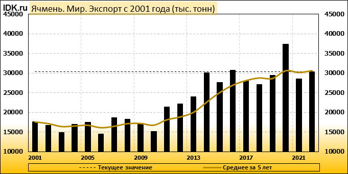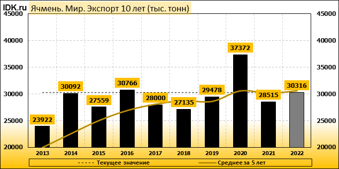 Экспорт: оценивается в 30316 тысяч тонн. За месяц показатель вырос на 1.34 процента.