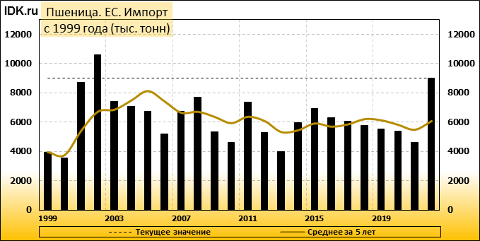 Импорт: составит 9000 тысяч тонн. Значение по прошествии месяца не изменилось.