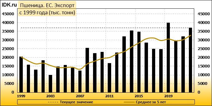 Экспорт мягкой пшеницы из Европейского Союза в сезоне 2022/23, начавшемся в июле, к 5 марта достиг 21,02 млн тонн, что почти на 8% больше по сравнению с 19,52 млн тонн на той же неделе в сезоне 2021/22, согласно данным, опубликованным Европейской комиссией.