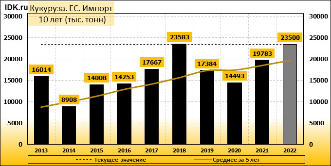 Импорт: составит 23500 тысяч тонн. Значение по прошествии месяца не изменилось.