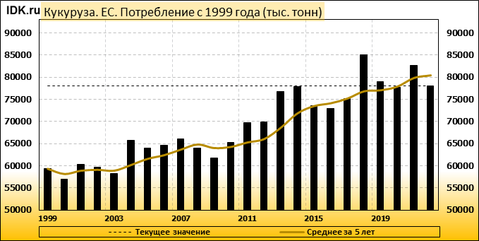 Потребление: показатель не изменился и составляет 78100 тысяч тонн.