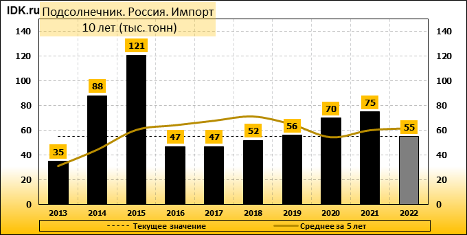 Импорт: составит 55 тысяч тонн. Значение по прошествии месяца не изменилось.