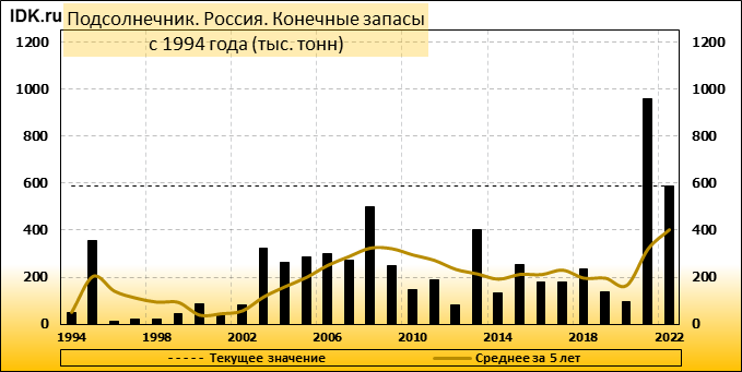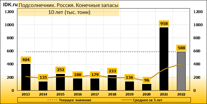 Конечные запасы: составят 588 тысяч тонн. Оценка с последнего отчета снизилась на -20.33 процента.