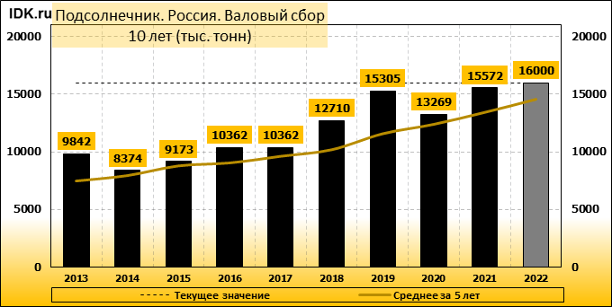Валовый сбор: оценка не изменилась и составляет 16000 тысяч тонн.