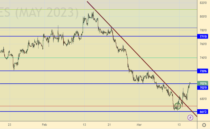 Покупка: нет. Кто в позиции от 670.0 и 680.0 перенесите стоп на 677.0. Цель: 770.0.