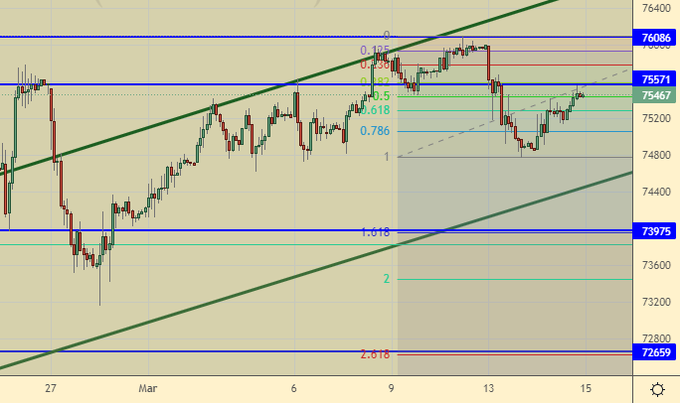Продажа: нет. Кто в позиции от 75600 и 75400, держите стоп на 76100. Цель: 70000.