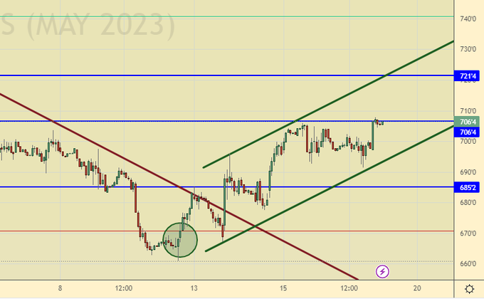 Покупка: нет. Кто в позиции от 670.0 и 680.0 перенесите стоп на 687.0. Цель: 770.0.