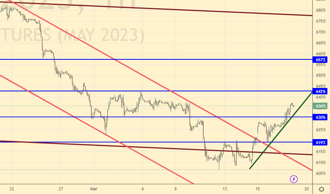 Евро получил поддержку от своего регулятора в виде подъема ставки на 0.5%. Теперь ставка составляет 3.5%, что можно считать высоким значением в складывающихся обстоятельствах. Пока ЕЦБ проигнорировал проблемы Credit Swiss, однако, можно ожидать роста контроля регулятора над коммерческими банками.