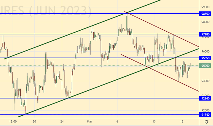 Продажа: при подходе к 102000. Стоп: 104000. Цель: 80000 (50000, 20000). Кто в позиции от 96000, держите стоп на 96800. Цель: 80000 (50000, 20000).