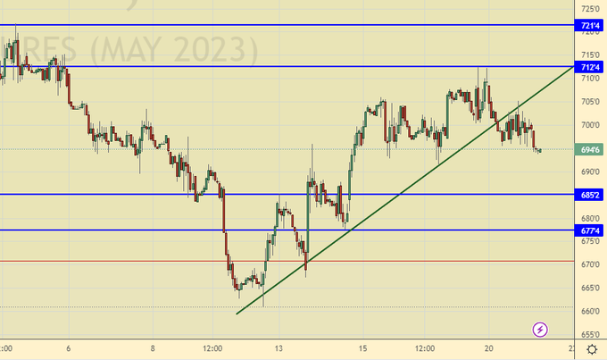 Продажа: нет. Кто в позиции от 700.0, перенесите стоп на 707.0. Цель: 600.0.