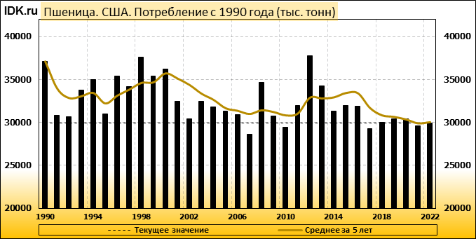 Потребление: показатель пересмотрен в сторону понижения до 29937 тысяч тонн. Значение упало на -2.22 процента.