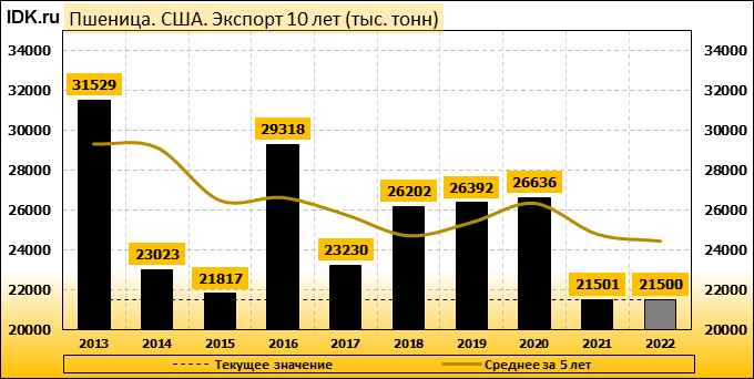 Экспорт: оценивается в 21500 тысяч тонн. За месяц показатель не претерпел изменений.