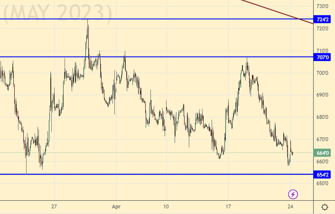 Пшеница (майский контракт, CME Group, исполнение 12.05.2023)