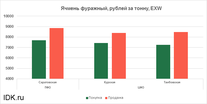 За прошедшую неделю с 17.04.2023 по 21.04.2023 средняя цена на фуражный ячмень, согласно выставленным заявкам трейдеров, выросла по всем округам на 336 рублей. Средняя цена составляет 8077 рублей за тонну.
