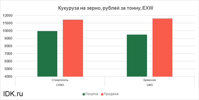 За прошедшую неделю с 17.04.2023 по 21.04.2023 средняя цена кукурузы на зерно, согласно выставленным заявкам трейдеров, выросла по всем округам на 122 рубля. Средняя цена составляет 10630 рублей за тонну.