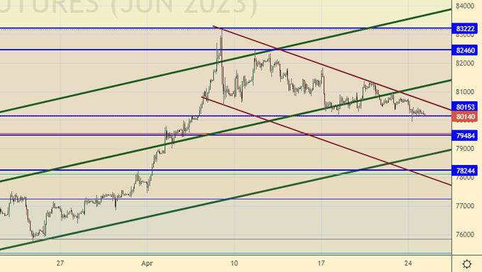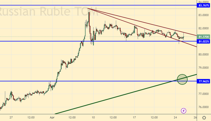 Не можем закрепиться ниже 81.00. Пока ожидания трейдеров смещены вверх. Мы вполне способны пройти к 88.00. Если G7 введут запрет на весь импорт в мае, это может привести к росту цен на ряд производственных товаров.