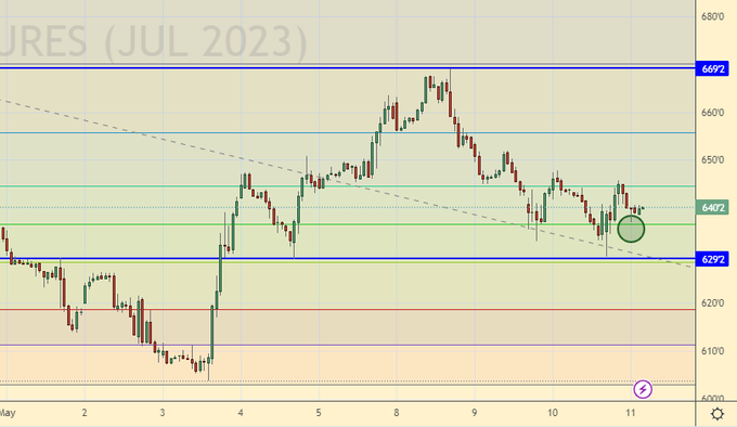 В Стамбуле продолжаются торги (переговоры) по продлению зерновой сделки. Если она и будет пролонгирована, то только на 2 месяца. Всё это очень странно выглядит, учитывая то, что России некуда девать собственное зерно и наши фермеры вынуждены сейчас отдавать его по крайне низкой цене. Если сделка состоится, то скорее всего цены несколько снизятся. Если же нет, то будет скромный рост. Основной фокус рынка смещается на завтрашний отчет USDA с прогнозами валового сбора на предстоящий сезон.