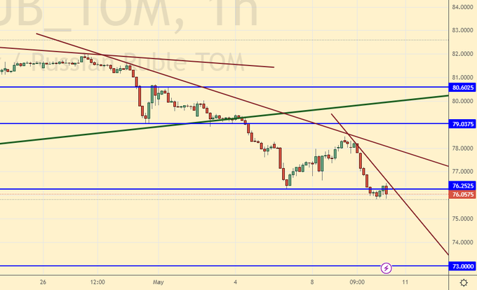 Картинка такова, что мы не можем исключать падения к 73.00. Запад продолжает рубить концы и всё дальше отталкивать от себя Россию. В этих условиях валюты нужно будет уже не так много. Схема продал нефть, купил доллары и вывел их из страны теперь не работает. Так как доллары из России никто в мире не примет. Все в рубли, товарищи!