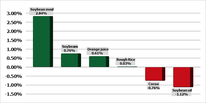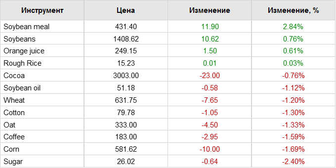 Рынок фьючерсов на сою торгуется со старым приростом от 1/2 цента в сентябре до 8 1/2 цента в мае. Май остается с премией в 37 центов к июлю до истечения срока в пятницу. Контракты на новый урожай пока на 3-4 цента ниже. Соевое масло продолжает снижаться, потеряв 56 пунктов. Министерство сельского хозяйства США объявило о крупной частной экспортной продаже 132 тыс. тонн соевых бобов нового урожая в неизвестном направлении. Еженедельный отчет об экспортных продажах показал, что за неделю, закончившуюся 04.05., было продано 62 тыс. тонн фасоли старого урожая и 50 тыс. тонн фасоли 23/24. Аналитики ожидали от 150 до 500 тысяч тонн для старого урожая и от 0 до 200 тысяч тонн для нового урожая перед отчетом. Министерство сельского хозяйства США отметило обязательства по экспорту старых культур на уровне 50,77 млн тонн (1,865 барр. барреля), а общие форвардные продажи на уровне 1,887 млн тонн по состоянию на 04.05.