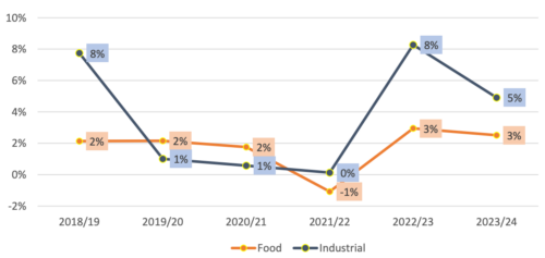 Рисунок 4. Рост потребления продуктов питания и промышленного растительного масла