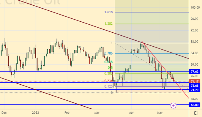 Fall scenario: if there is an increase to 77.00, it makes sense to sell. We will not explicitly recommend entering short from current levels.