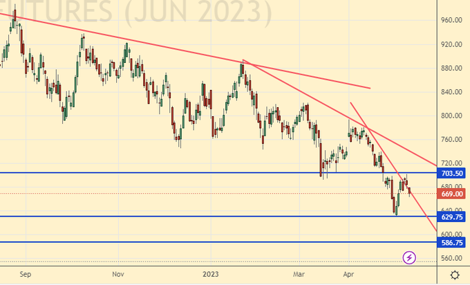 Fall scenario: short from 710.0. Here is the only idea for the near future. Given that in a month and a half new grain will begin to put pressure on the market, this is a normal topic.