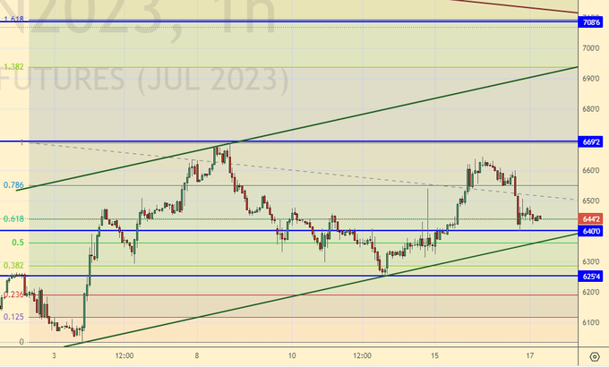 Зерновая сделка если и состоится, то в каком-то усеченном виде. На данный момент условия для полноценного продления не сформированы. Рынок пшеницы способен вырасти в случае провала соглашения. Сильного роста не ждем, но ход к 710.0 вполне вероятен.