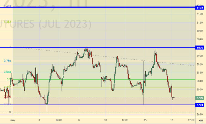 Пшеница (июльский контракт, CME Group, исполнение 14.07.2023)