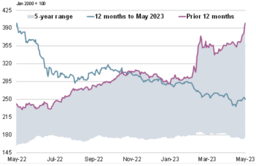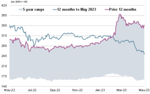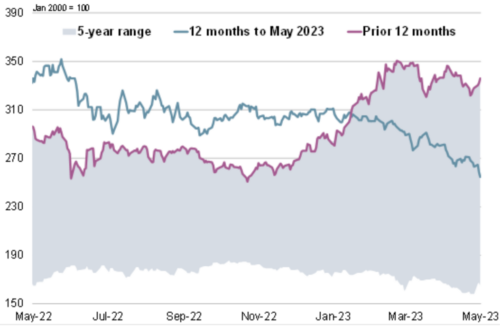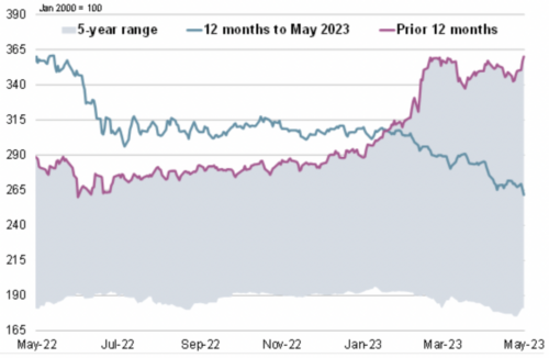 Тенденция к снижению на мировых экспортных рынках зерна и масличных культур в последние недели ускорилась, при этом GOI IGC снизился на 7% до 23-месячного минимума. Как и в предыдущем месяце, рынок риса снова стал исключением, а средние цены ФОБ в целом стали выше.