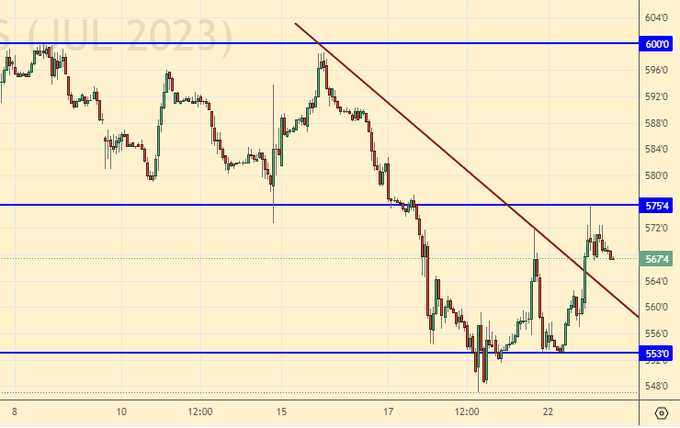 Пшеница (июльский контракт, CME Group, исполнение 14.07.2023)