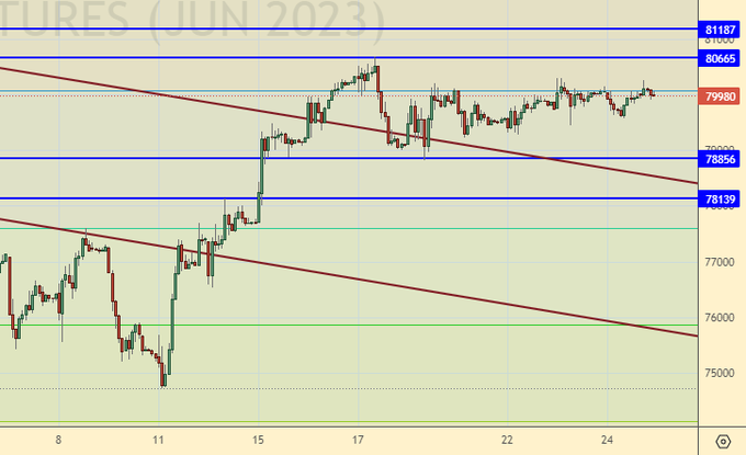 Продажа: нет. Кто в позиции от 80200, держите стоп на 80800. Цель: 73000.