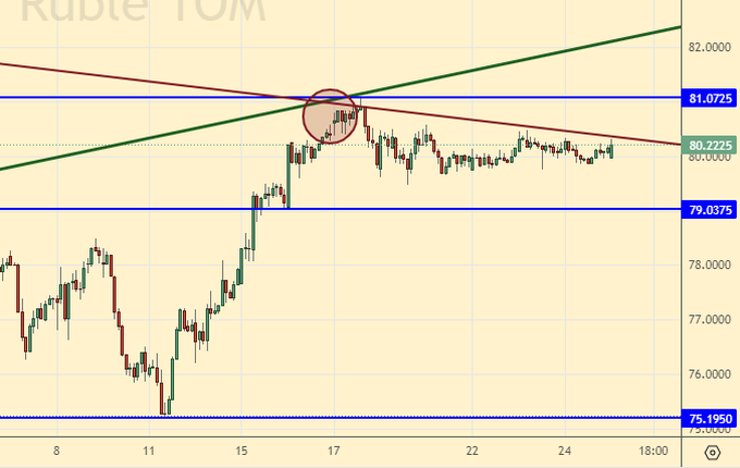 Продажа: нет. Кто в позиции от 80.70, держите стоп на 81.30. Цель: 73.00.