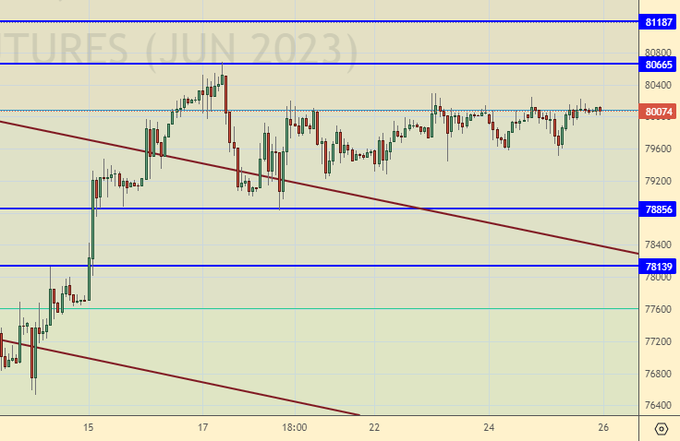 Продажа: нет. Кто в позиции от 80200, держите стоп на 80800. Цель: 73000.