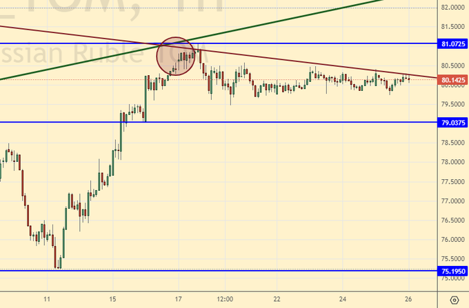 Продажа: нет. Кто в позиции от 80.70, держите стоп на 81.30. Цель: 73.00.