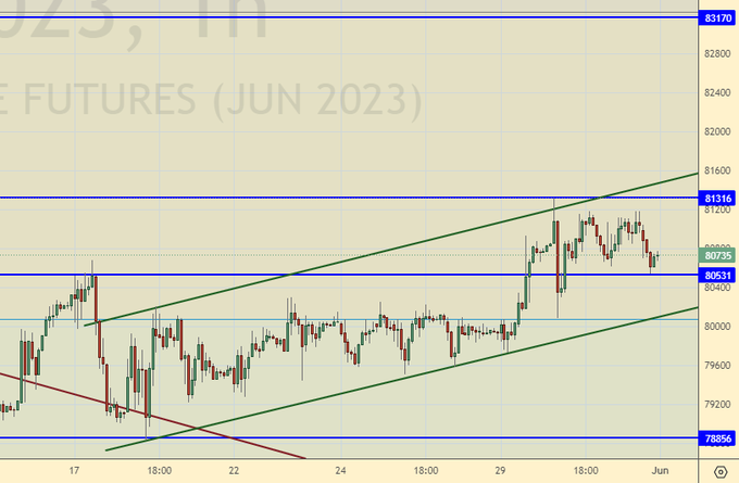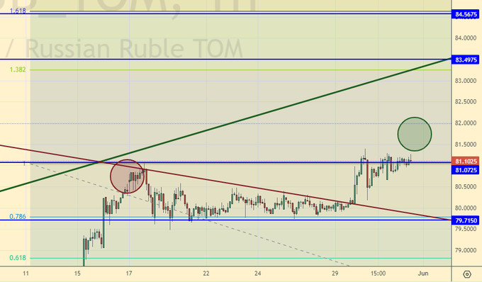 Мелкие спекулянты наверняка среагировали на рост пары выше уровня 80.00 и вошли в покупку. Видно, что регулятор пока не дает рынку разогнаться. А наверху нас ждет уровень 90.00 (более ранний прогноз был на 88.00). Не исключено, что рубль продолжат ослаблять. Стоит лишь призвать к тому, чтобы это происходило плавно. Например, со скоростью 50 копеек в неделю.