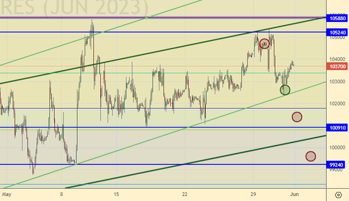 Покупка: нет. Кто вошел от 102500, перенесите стоп на 102300. Цель: 112000.