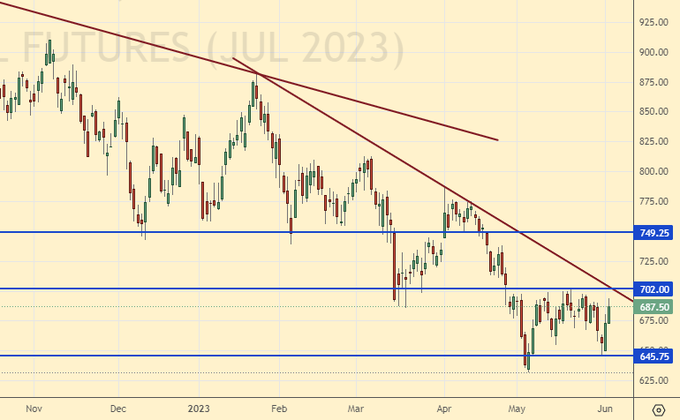 Growth scenario: we are considering the July futures, the expiration date is July 15. The entire growth is built on the disruption of sellers’ stop orders. Corn with such positive forecasts cannot go up. We don’t buy.