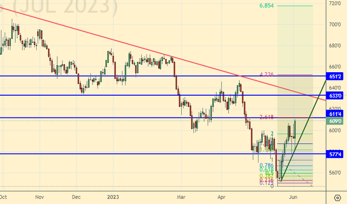 Fall scenario: we continue to believe that the current rise in corn is a bluff. You can sell from current levels.