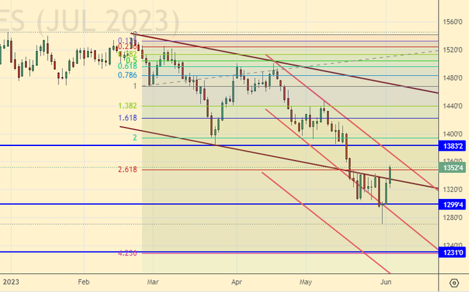Growth scenario: we are considering the July futures, the expiration date is June 20. We sank very hard. Our stop orders have been triggered. We take a break for one week.