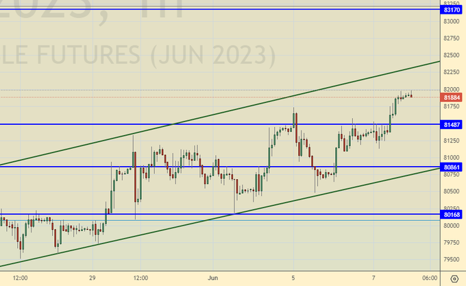 Покупка: нет. Кто в позиции от 81000, перенесите стоп на 80700. Цель: 90000.