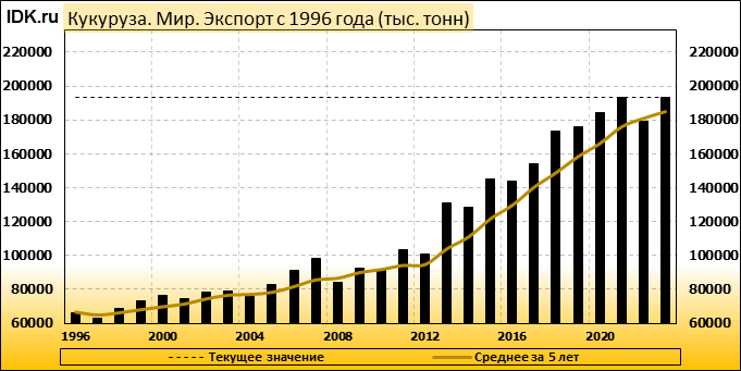 Экспорт: оценивается в 193367 тысяч тонн. За месяц показатель вырос на 1.31 процента.