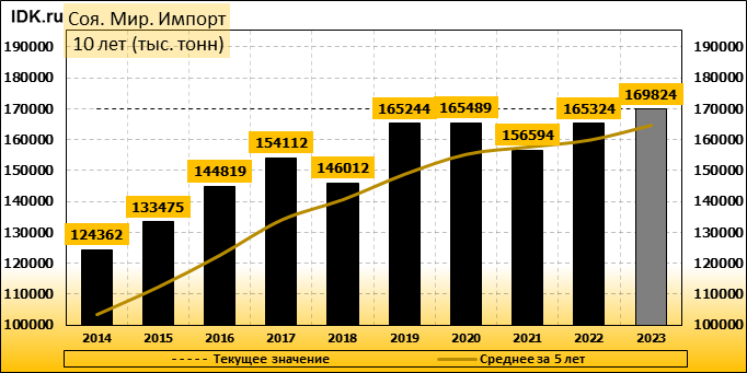 Импорт: составит 169824 тысячи тонн. Значение по прошествии месяца поднялось на 0.03 процента.