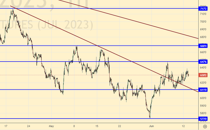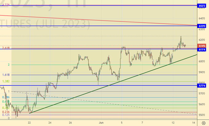 Пшеница (июльский контракт, CME Group, исполнение 14.07.2023)